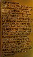 Del embalaže zelenjavne kremne juhe s popečenimi kruhki in dodatkom vitaminov
