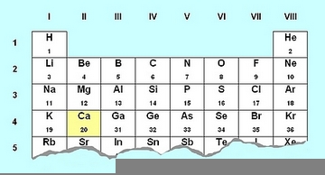 Na sliki je del periodnega sistema in na njem je posebej označen element s kemijskim simbolom Ca. Odgovori na vprašanja, ki se navezujejo na ta element in njegove delce. Pomagaj si s periodnim sistemom.