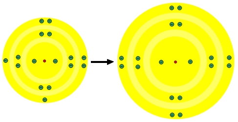 Na shemi je prikazan nastanek iona iz atoma. Kateri opis pravilno opisuje shemo?