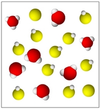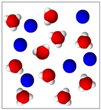 | Opomba: Zaradi preglednosti na slikah niso narisani vsi delci, ki so prisotni v raztopinah. Narisani so le oksonijevi (H3O+) ioni. |